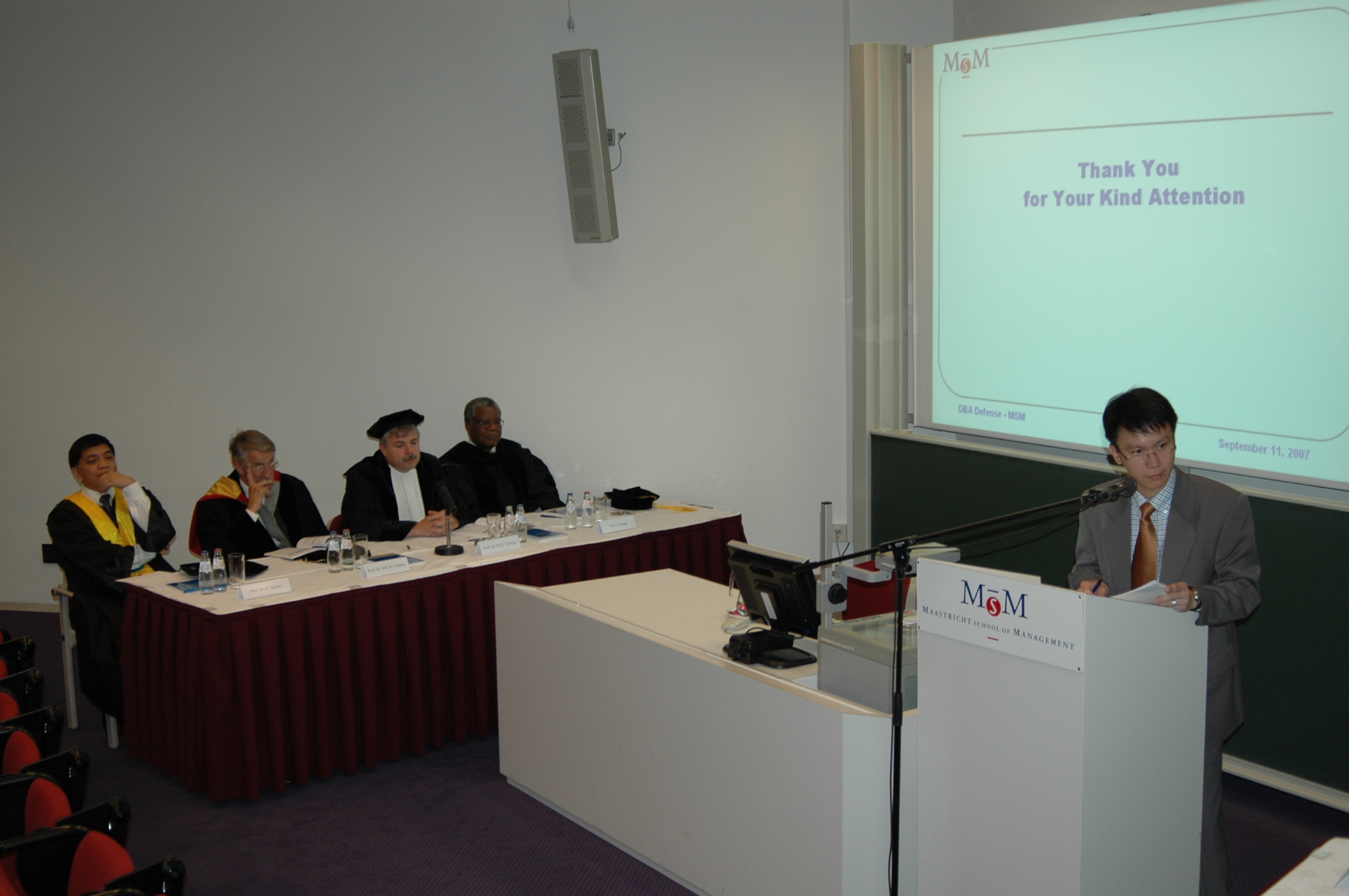 On Tuesday September 11, 2007, Totok Sugiharto obtained his Doctor title Degree from Maastricht School of Management. He successfully defended his thesis on Equity Share Valuation in the Indonesian Emerging Capital Market.